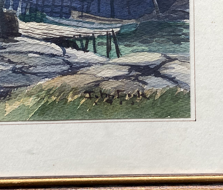 John Cook was born in Halifax, 1918. He began painting overseas during the Second World War while serving with the Canadian Army Signal Corps. Later he studied at the Slade School, England, and the Nova Scotia College of Art and at the Academie des Beaux-Arts, Antwerp, Belgium. Mr Cook painted in the realistic style. He was a prolific painter, a landscape painter; he later painted the old part of Halifax which was quickly being modernized. Many of his paintings were done on the spot, one step ahead of the demolition crews. He exhibited with the Nova Scotia Society of Artists, the Maritime Art Association and the Winnipeg Art Association. The Department of Northern Affairs and the Nova Scotia Museum bought his work. Many of the fine artists of Nova Scotia painted with him and he was an ardent teacher. He died in 1984.