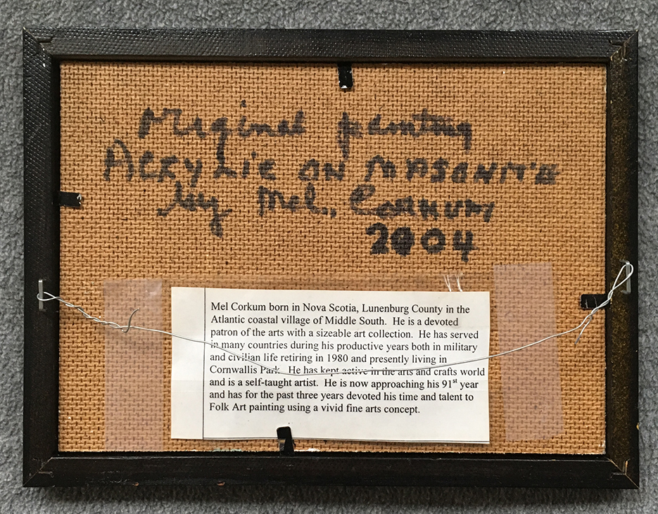 Enjoy our collection of Mel Corkum folk art paintings for sale, if you have any question or would like more detailed pictures please e-mail us at info@atlanticfineart.com. We are always looking to acquire Mel's work, if you're looking to sell any pieces please contact us at info@atlanticfineart.com.